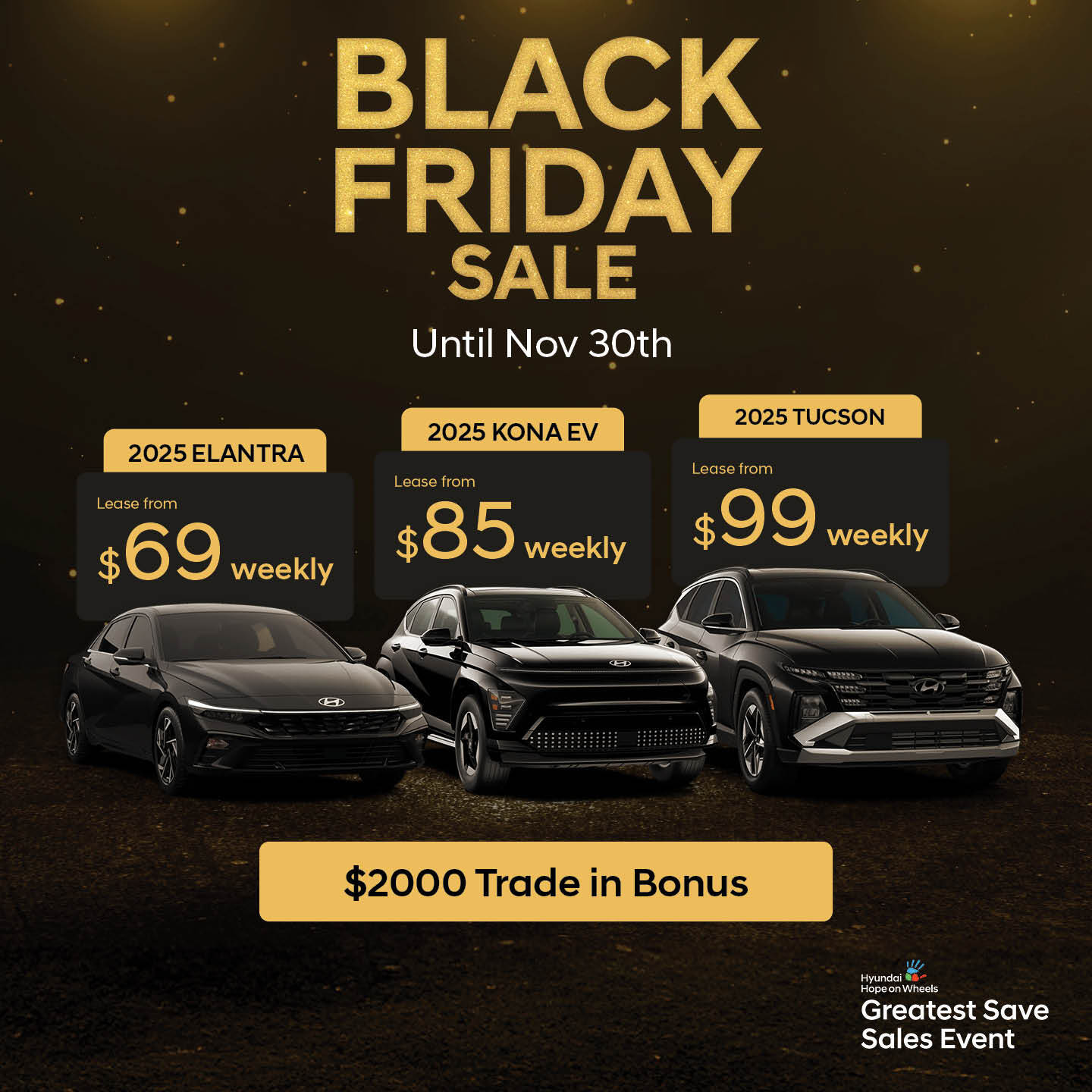 AMVIC Licensed Business. Offers available OAC and exclude GST. Vehicles for illustrative purposes only. $2,000 with trade-in bonus is in the form of trade value, dependent on trade-in vehicle year, make, marketability & condition - eligibility up to dealer discretion. Trade-in bonus applies to units 2018 and newer. Leasing for $69 weekly +tax on the 2025 Elantra Preferred applies to STK# 25EL0121 over 36 months at 4.99% w/loyalty, $1,550 down, SP: $24,499, Residual Value: $15,251.38 , COB = $2,882.41 , 16,000 km/yr. Leasing for $99 weekly +tax on the 2025 Tucson Preferred applies to STK# 25TU0626 over 36 months at 4.99% w/loyalty, $1,450 down, total lease obligation: $36,749, Residual Value: $24,688.83, COB = $4,512.85, 16,000 km/yr. Leasing for $145 weekly +tax on the 2025 Santa Fe Luxury applies to STK#: 25SF9022 over 36 months at 5.79% w/loyalty, $2,250 down, total lease obligation: $53,099, Residual Value: $36,175.32, COB = $7587.78, 16,000 km/yr. Leasing for $85 weekly +tax on the 2025 Kona EV Preferred Trend applies to STK#: 25KN3530 over 24 months at 0.99% w/loyalty, $1,850 down, total lease obligation: $43,744, Residual Value: $34,033.32, 16,000 km/yr. 0% Financing and $11,500 off applies to 2025 Ioniq 6 STK#256I6070. Enter to win a signed McDavid jersey with new vehicle purchase, one entry per person. Free winter tires applies to new car purchases only, while supplies last. Subject to change without notice. No monthly finance payments (payment deferral) till February 2026 applies to standard rates only and to eligible customers who finance a new model on approved subvented loans through Hyundai Financial Services. 1% loyalty rate reduction only applicable to eligible lease customers when upgrading from a Hyundai vehicle. Offers valid until November 30th, 2025.